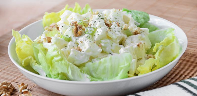 Ensalada Waldorf – Receta argentina: Es una ensalada agridulce muy fresca, ideal para acompañar carnes. Fue creada en New York en 1893 en el famoso Hotel Waldorf. En Argentina es muy utilizada en las fiestas para acompañar al cerdo.